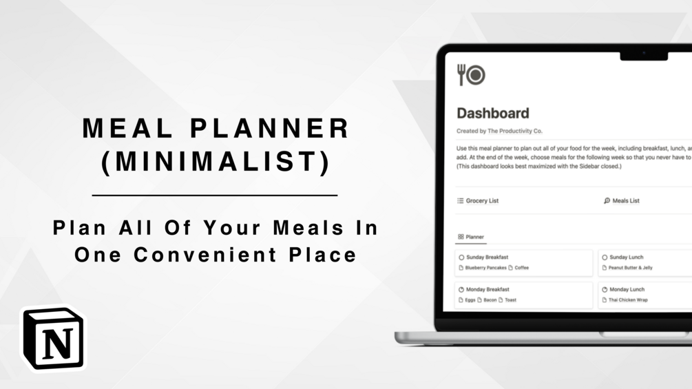 Recognizing the significance of meal planning in maintaining a balanced diet, you know that coordinating your meals ahead of time is essential. We present to you the Meal Planner (Minimalist), a state-of-the-art Notion template. It's tailor-made to assist you in meticulously planning your meals, and ultimately, achieving your nutritional objectives.